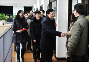 2013年2月19日,公司全體員工迎來了春節長假后的第一個工作日。上午10點整,公司黨委書記、總經理萬軍率公司領導帶著新春的祝福和問候,逐一走訪公司各個樓層、辦公室,向公司全體員工拜年,萬總代表公司領導感謝大家在過去的一年里為公司發展做出的貢獻,祝福全體員工新年幸福快樂。 萬總一行隨后還逐一走訪了公司下屬和關聯企業華建監理、拜司特公司,向大家拜年。