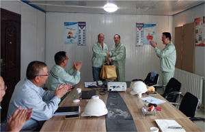 在與我司項目總承包現場團隊成員以及華建監理現場團隊成員的座談會上,盛躍星書記代表中化藍天集團向我司項目現場管理、監理人員表示親切的慰問,充分肯定我司項目現場管理人員、監理人員的辛勤付出和展現的工作業績。盛書記在講話中談到,在與業主方領導的溝通交流后,充分感受到我司現場人員勤奮、努力、踏實的工作作風,全體同事發揚不怕苦、不怕累的精神,以積極樂觀的工作態度、專業敬業的工作精神,克服現場艱苦條件所帶來的種種不利因素,積極認真的開展工程總承包管理和工程監理工作,贏得業主好評,在公司內部樹立了積極努力、拼搏向上的工作典范。盛書記還就現場工作檢查中發現的一些問題給予了指導并提出工作要求。