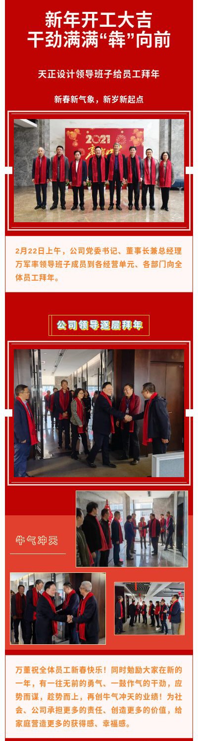 新年開工大吉,干勁滿滿“犇”向前——天正設計領導班子給員工拜年